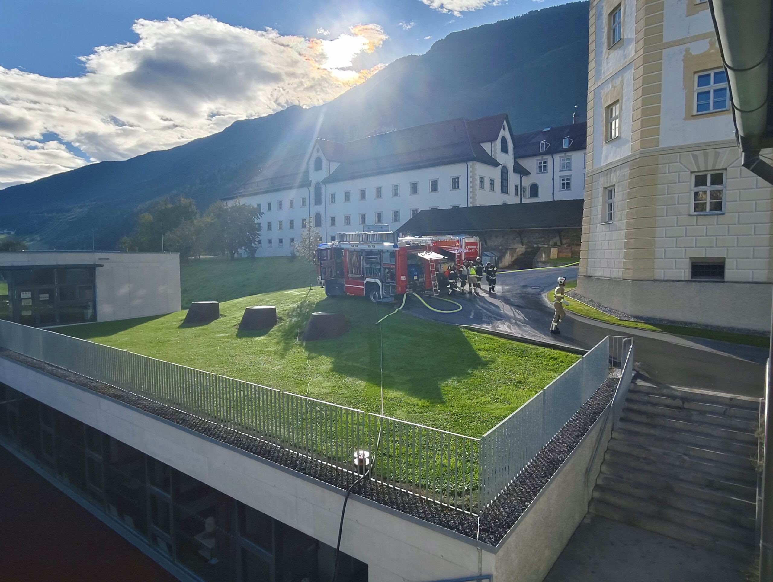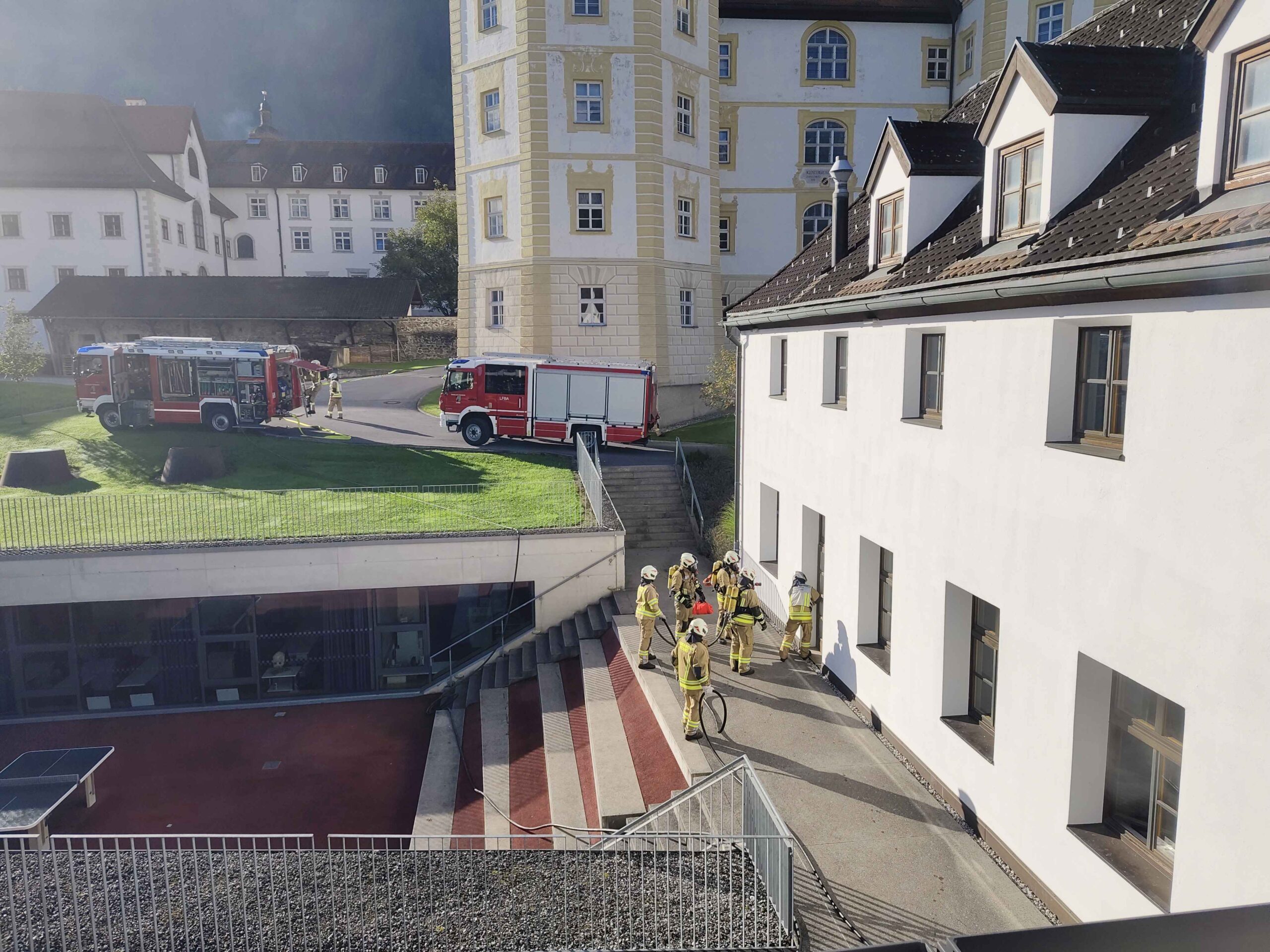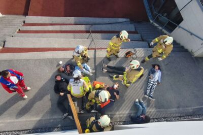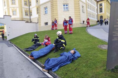 Am Samstag, den 27. September, wurde am Meinhardinum eine groß angelegte Feuerübung durchgeführt. Das realistisch gestaltete Szenario: Eine Explosion im Chemiesaal mit mehreren verletzten Schüler:innen sowie mehreren Brandherden im Schulgebäude.